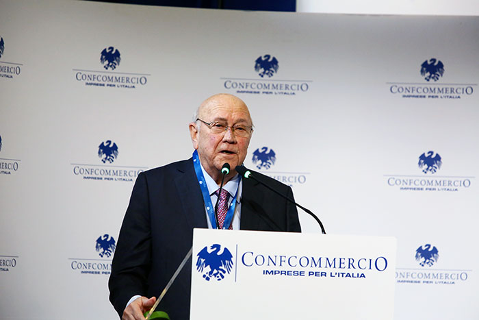 L’intervento conclusivo del Forum di Confcommercio è stato quello di Frederik Willem de Klerk, Premio Nobel per la Pace, già Presidente della Repubblica del Sudafrica. “E’ un momento storico nel quale i popoli sono in movimento. In tutto il mondo le popolazioni stanno diventando sempre più cosmopolite”. “Come voi europei ben sapete – ha detto de Klerk – la diversità culturale è stata accresciuta con nuovi arrivi di migranti che cambiano le società che una volta erano omogenee. E dunque ora bisogna interpretare i cambiamenti”. Oggi la vera sfida è quella di gestire la diversità tra le varie etnie e i differenti gruppi religiosi”. “La globalizzazione è un fenomeno che va affrontato con serietà. In Sudafrica noi abbiamo tante diversità che stiamo cercando con tante difficoltà a gestire”. “Come voi italiani sapete, l’arrivo di numeri indeterminati di rifugiati sta creando problemi umani e logistici insostenibili. L’Unione Europea si trova di fronte alla sfida di raggiungere un equilibrio tra i valori umanitari fondamentali e la politica. L’Unione deve prendere anche in considerazione la necessità di favorire l’immigrazione dei tanto necessari lavoratori specializzati, in vista del previsto calo della propria forza lavoro di 20 milioni di unità entro il 2030″. Secondo de Klerk, l’immigrazione e la demografia hanno anche svolto un ruolo centrale nelle elezioni del 2016 del presidente Donald trump”. “Siamo entrati – ha detto de Klerk – nell’era del villaggio globale. E’ entusiasmante ma è spesso anche origine di grande confusione e talvolta anche di un po’ dii paura. Persone provenienti da sempre più diversi contesti culturali dovranno convivere nelle strade, nei mercati e nelle aziende internazionali che formano il nostro villaggio globale. Ma ci richiederà anche di osservare nuovi codici di comportamento e di rispettare le variegate identità culturali, religiose e linguistiche”.