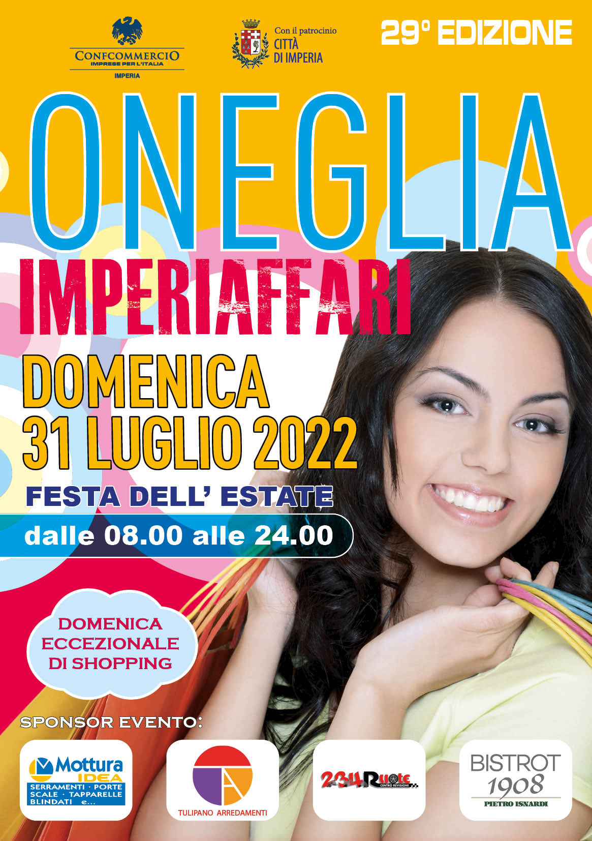 Giunta alla 29° edizione, domenica 31 luglio torna ImperiAffari a Oneglia, con una grande giornata di shopping e divertimento in tutto il centro storico onegliese, dalle 8 alle 24!