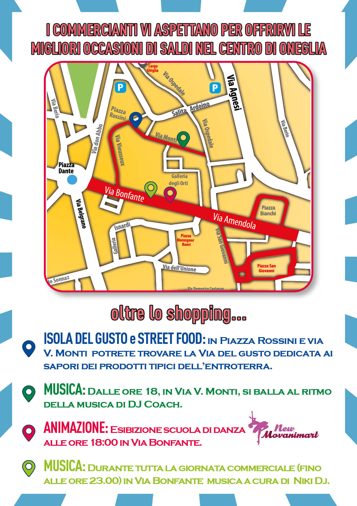 I commercianti vi aspettano per offrirvi le migliori occasioni di saldi nel centro di Oneglia, con un’intera giornata di festa, musica e divertimento per tutti!