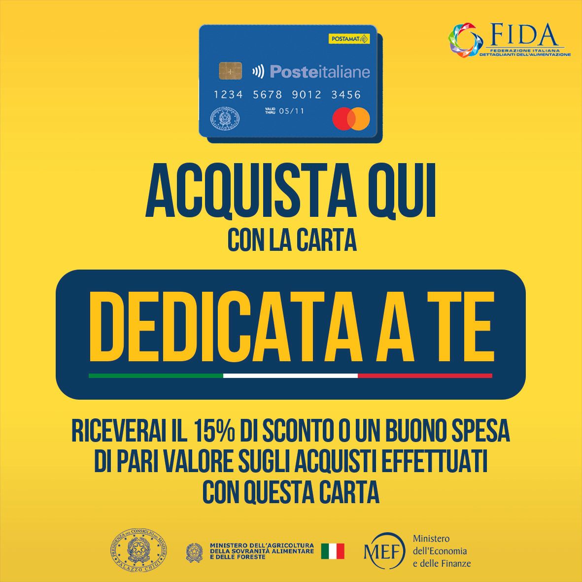 Il contributo viene erogato ai destinatari della misura attraverso una carta elettronica di pagamento, prepagata e ricaricabile, Postepay, spendibile presso gli esercizi commerciali aderenti all’iniziativa, che vendono generi alimentari. Le carte assegnabili sono complessivamente pari a 1.300.000, sono nominative e saranno operative da fine luglio 2023.